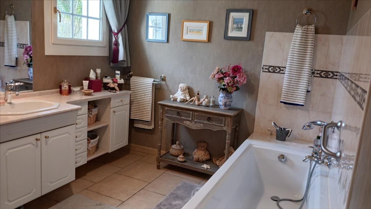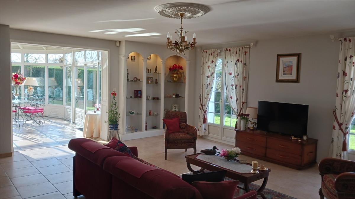 Beaux volumes pour ce pavillon au calme et sans vis à vis. Situé à moins de 2 km du Port du Becquet, un pavillon spacieux avec autonomie de plain-pied, offrant : - au rez-de-chaussée : entrée, salle-salon-bureau d'environ 60 m², belle véranda chauffée (exposé Sud-Ouest) de 45 m² avec cheminée, cuisine aménagée et équipée, chambre, salle de bains, dégagement-vestiaire, WC.- à l'étage : pièce palière, deux chambres, salle d'eau avec WC, grenier offrant des possibilités pour créer une chambre supplémentaire.Garage attenant avec grenier au-dessus.Terrasse sur deux côtés bien exposée. Allée et cour bitumées. Terrain arboré autour.Ensemble en très bon état dans un endroit calme.Raccordé au tout à l'égout. Les informations sur les risques auxquels ce bien est exposé sont disponibles sur le site Géorisques : www. georisques. gouv. fr